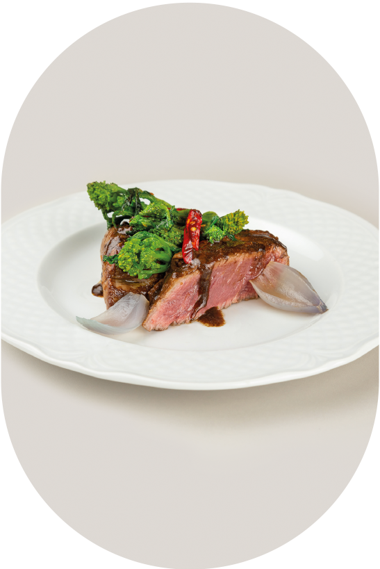 Angus fillet with Cokito coffee, seasonal vegetables and Tropea red onion
